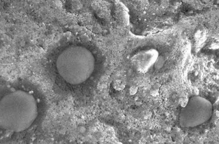 “Una de ellas pertenece al grupo de las nanohaloarqueas. Se trata de organismos esféricos de unos 50 nanómetros, tres veces más pequeños que otras bacterias. Se recubren de minerales y acaban recubiertos por una capa de minerales como si estuvieran fosilizadas”, describe Gómez.