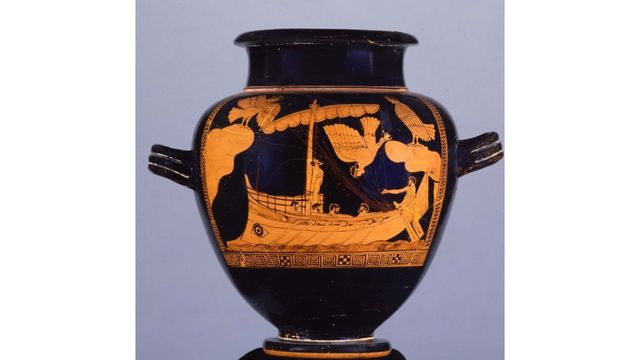 El mástil y los bancos de remo del navío hallado en el fondo del Mar Negro guardan gran semejanza con los asientos en los que remaba la tripulación de Ulises, que llevaban las orejas tapadas para que no surtiese efecto en ellos el canto de las sirenas que les atraía desde la isla de Helios. El jarrón expuesto en el British Museu, data del mismo período del que se cree que es el barco.