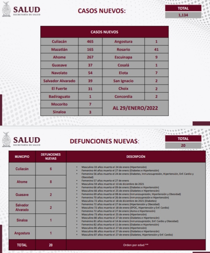 CULIACÁN, Sin.- Sinaloa registró este sábado 20 muertos por COVID-19, 8 son de Ahome y 6 de Culiacán, informó la Secretaría de Salud.