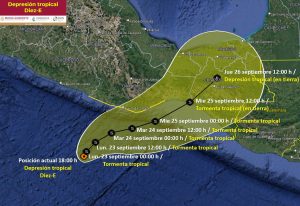 Se mantiene zona de vigilancia por efectos de tormenta tropical desde Punta Maldonado, Gro., hasta Salina Cruz, Oaxaca.
