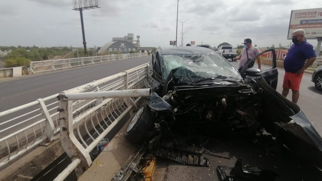 CULIACÁN, Sin.- Un joven resultó herido tras un accidente automovilístico registrado en el puente a Desnivel de Culiacán.