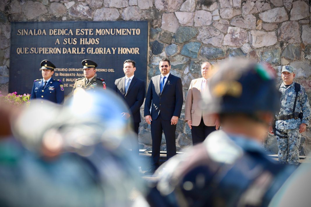 CULIACÁN, Sin.- En el marco del 135 Aniversario del Natalicio del General Rafael Buelna Tenorio, conocido como el “Granito de Oro”, autoridades civiles y militares, encabezadas por el secretario de Salud, Cuitláhuac González Galindo, quien acudió en representación del gobernador de Sinaloa, Rubén Rocha Moya, conmemoraron este acontecimiento con un izamiento de bandera a toda asta con honores de ordenanza en la plaza cívica de Palacio de Gobierno.