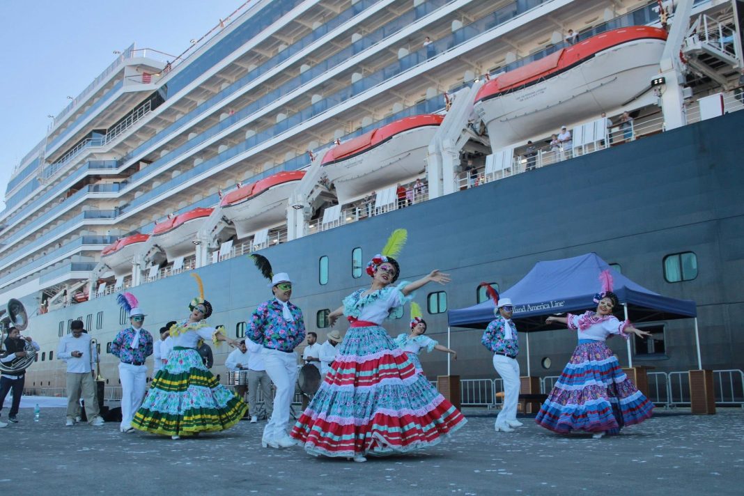 TOPOLOBAMPO, Sin.- Con 290 metros de longitud, el imponente Zuiderdam llegó con más de 2 mil 500 cruceristas, quienes fueron recibidos con la calidez que distingue a nuestra gente.