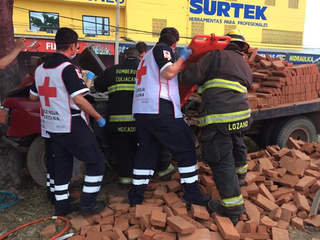 CULIACÁN, Sin.- Un adulto mayor que conducía un camión de carga resultó herido tras impactarse contra un árbol en el camellón del bulevar Zapata.