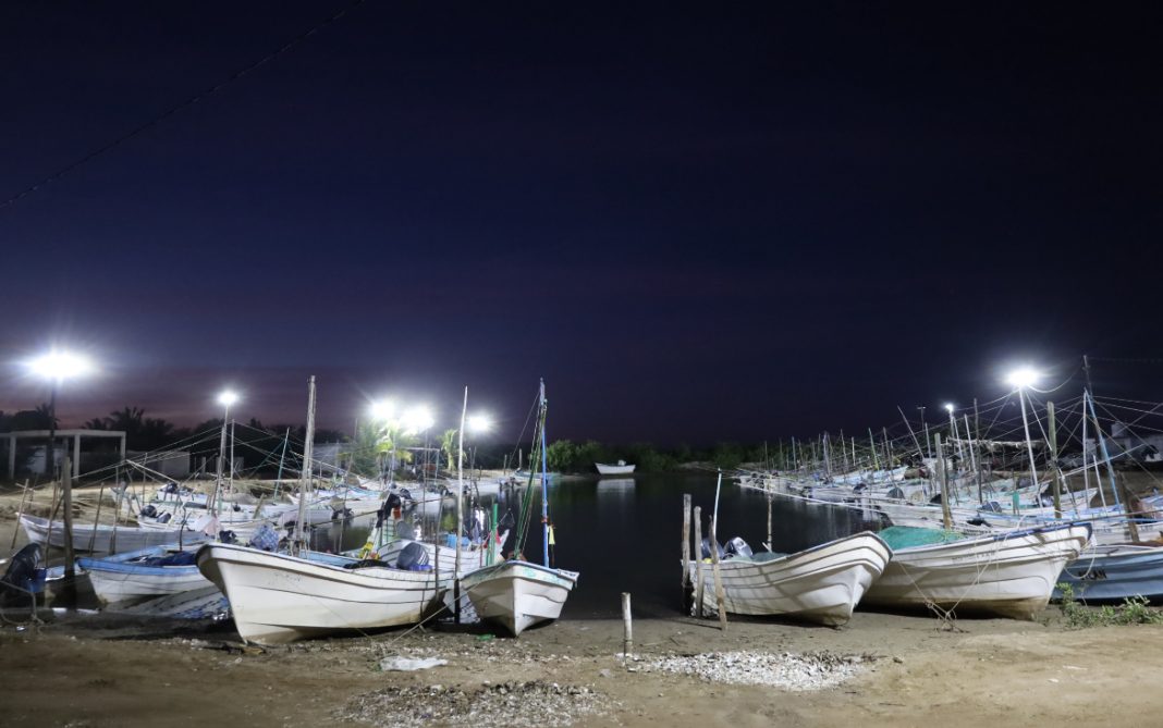 En el embarcadero de Dautillos se instalaron 24 luminarias LED tipo proyector de 500 watts, cinco postes de madera
