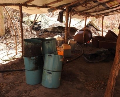 De acuerdo con la investigación, elementos de la SEMAR, en coordinación con policía estatal preventiva, ubicaron un predio en las inmediaciones del poblado Sanalona, Culiacán, Sinaloa, utilizado para la elaboración de drogas sintéticas e hicieron entrega del sitio a la Policía Federal Ministerial (PFM) y personal de Servicios Periciales, de esta institución, para realizar labores de inspección, procesamiento e investigación.