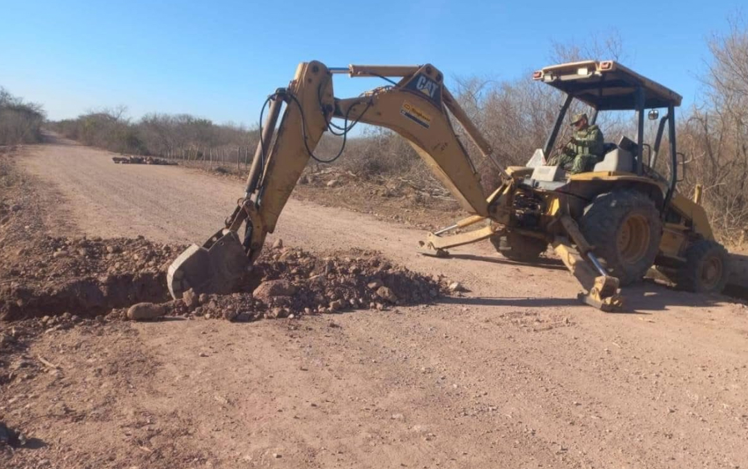 Con el apoyo de una retroexcavadora, los elementos militares realizaron excavaciones en la pista ubicada en el poblado Matadero, en Mazatlán, la cual tenía una longitud de mil 200 metros por 8 metros de ancho.