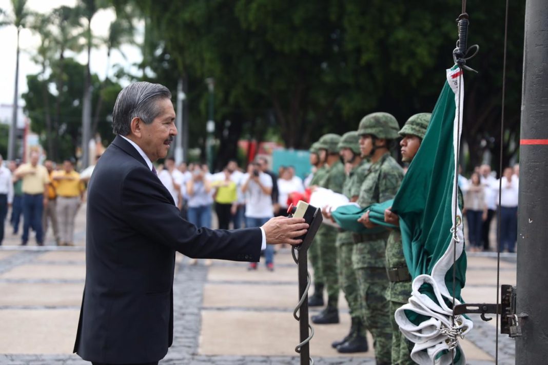 CULIACÁN, Sin.- El secretario General de Gobierno, Gonzalo Gómez Flores, encabezó el izamiento de la bandera nacional a toda asta con honores de ordenanza, en la Plaza Cívica de Palacio de Gobierno en Culiacán, con lo que da inicio de manera oficial la conmemoración del 208 Aniversario de la Independencia de México.