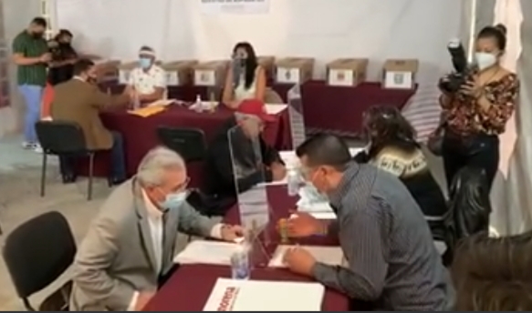 El primero mostró en redes sociales la llegada y presentación de documentos ante la mesa de registro habilitada en carpas provisionales en la sede nacional del partido, mientras que el segundo haciendo aún fila para ello.