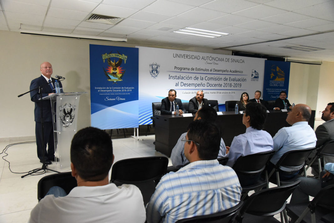CULIACÁN.- Quedó instalada formalmente por el rector de la Universidad Autónoma de Sinaloa (UAS), Juan Eulogio Guerra Liera, la Comisión de Evaluación al Desempeño Docente 2018-2019 integrada por 69 docentes que evaluarán, revisarán y darán la opinión técnica para ubicar a los maestros que acudieron a la convocatoria en uno de los cinco niveles que tiene el Programa de Estímulos al Desempeño Académico.