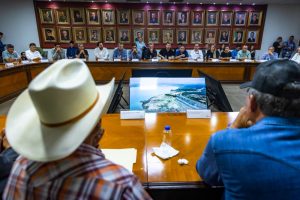 Contando con la presencia de Alejandro Isauro Martínez, director general del Organismo de Cuenca Pacífico Norte de la Conagua, los secretarios de gobierno Feliciano Castro Meléndrez y de Agricultura Ismael Bello Esquivel, además de todos los presidentes de las Asociaciones de Productores Agrícolas del Estado, Rocha Moya destacó el impacto que significa la firma de convenio, y se comprometió a ser un gestor permanente para que después del inicio de los trabajos a partir del próximo año, estos se realicen sin interrupciones.