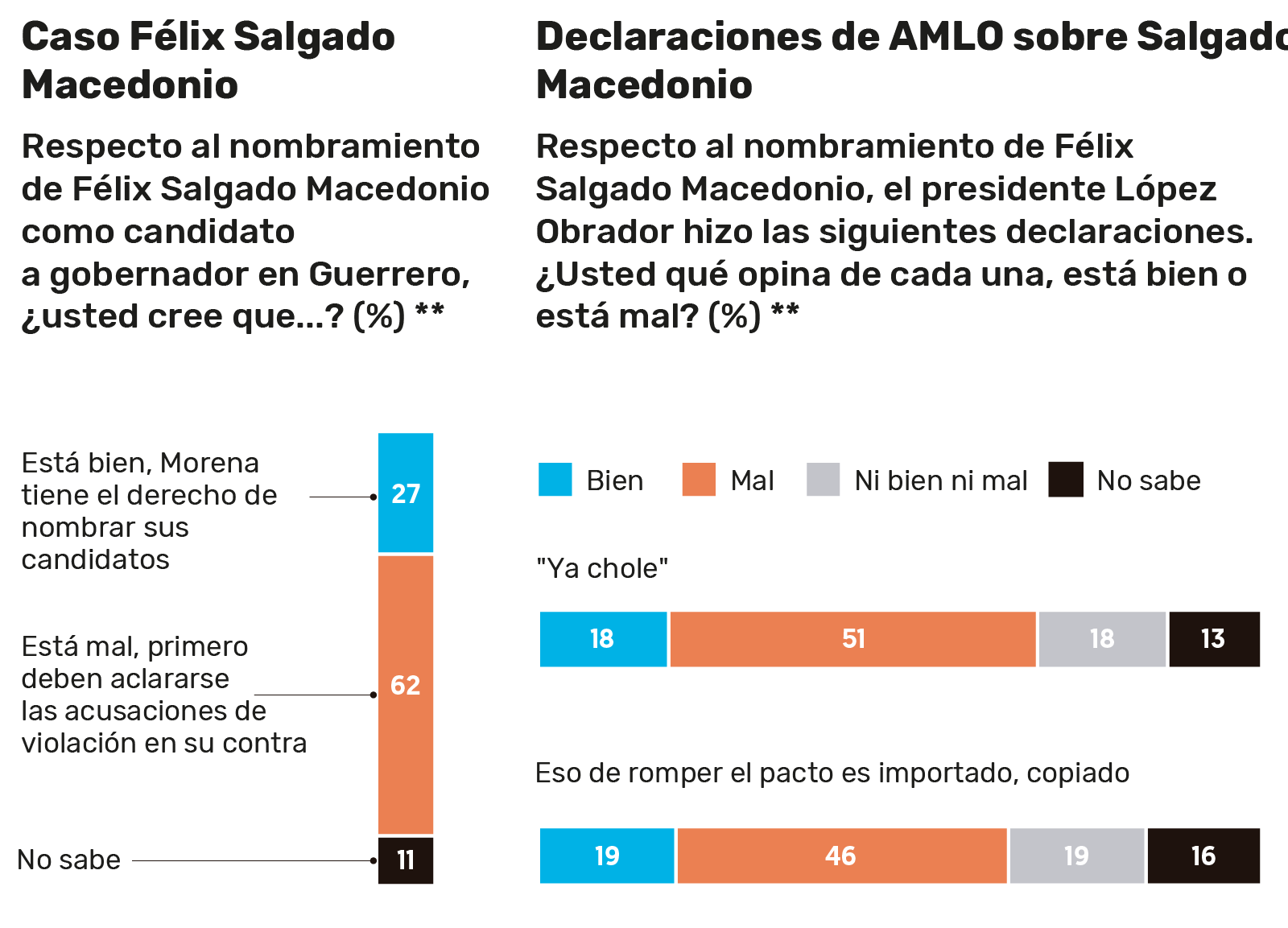 Y el 46 por ciento dio una opinión negativa ante la afirmación del Presidente de que eso de romper el pacto es importado, copiado; el 19 por ciento lo vio bien.