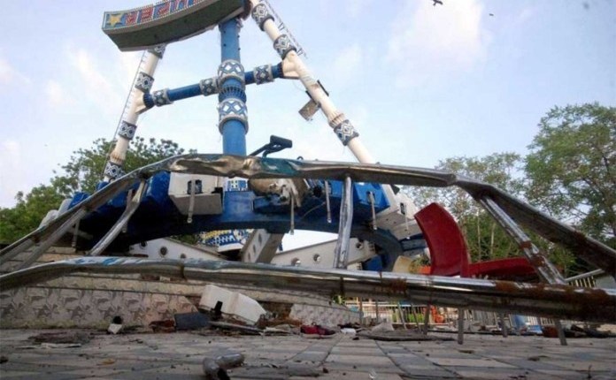 CIUDAD DE MÉXICO.- Una tragedia ocurrió en un parque de diversiones en Guyarat, en la India, cuando el juego mecánico en forma de péndulo se quebró en plena acción y al colapsar dejó a dos personas fallecidas.