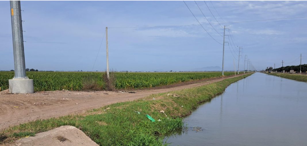 En el bordo del canal de riego Santa Martha cerca del campo agrícola Tres Naciones