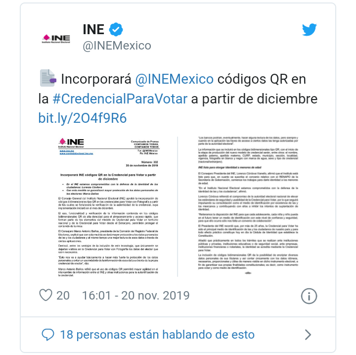 El código QR remplazará a la línea de código actual, que es equivalente a un PDF con cierta información de los electores. El cambio permitirá tener un sistema de encriptado de datos más fuerte y de esa formar incrementar la seguridad, según el INE.