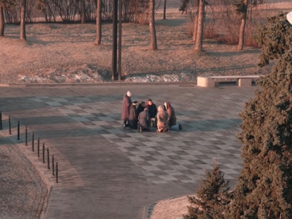 Un pequeño grupo de personas se reunieron para rezar en Kharkiv.