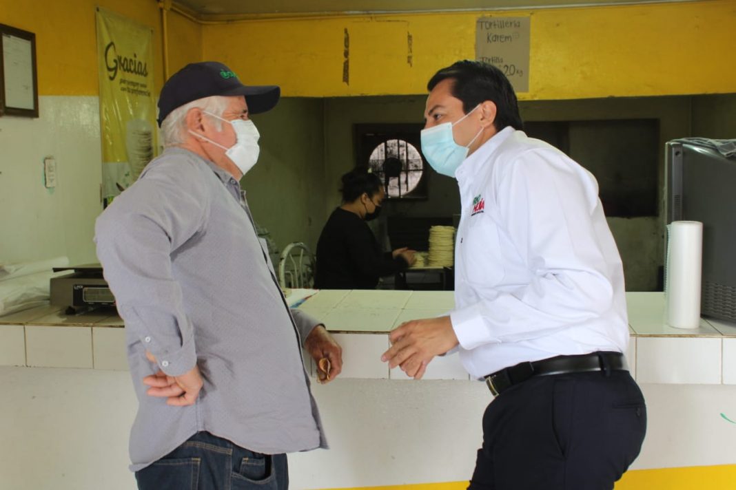 Visitando los locales de la sindicatura, el candidato del PRI a la presidencia municipal escuchó a los comerciantes quienes externaron que se encuentran en total abandono, por el gobierno federal y municipal.