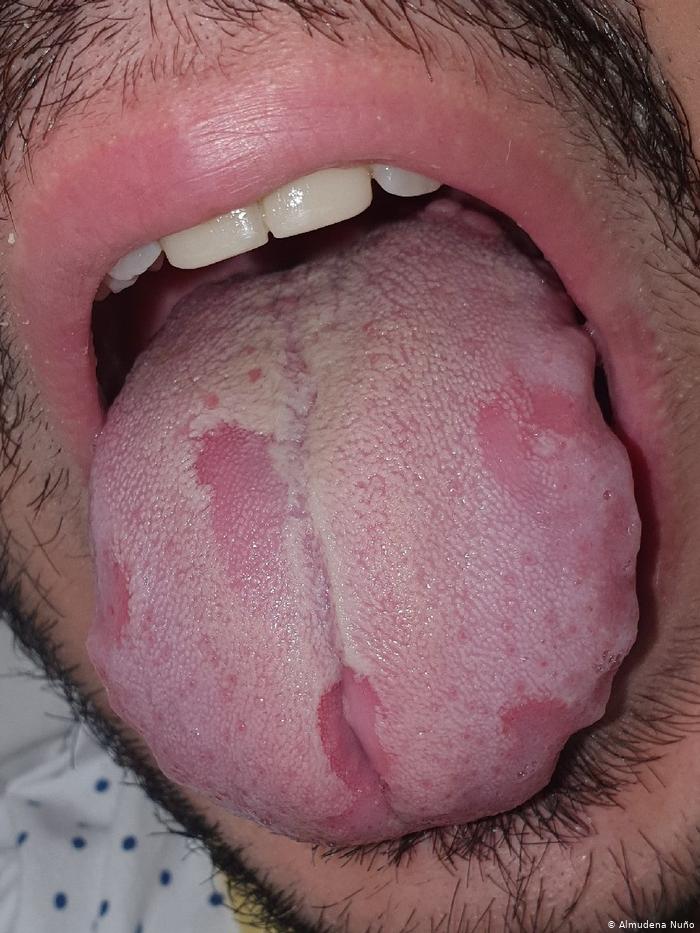“También la glositis, una inflamación en la que además se aprecian las marcas laterales de los dientes”, dice Nuño a Deutsche Welle.