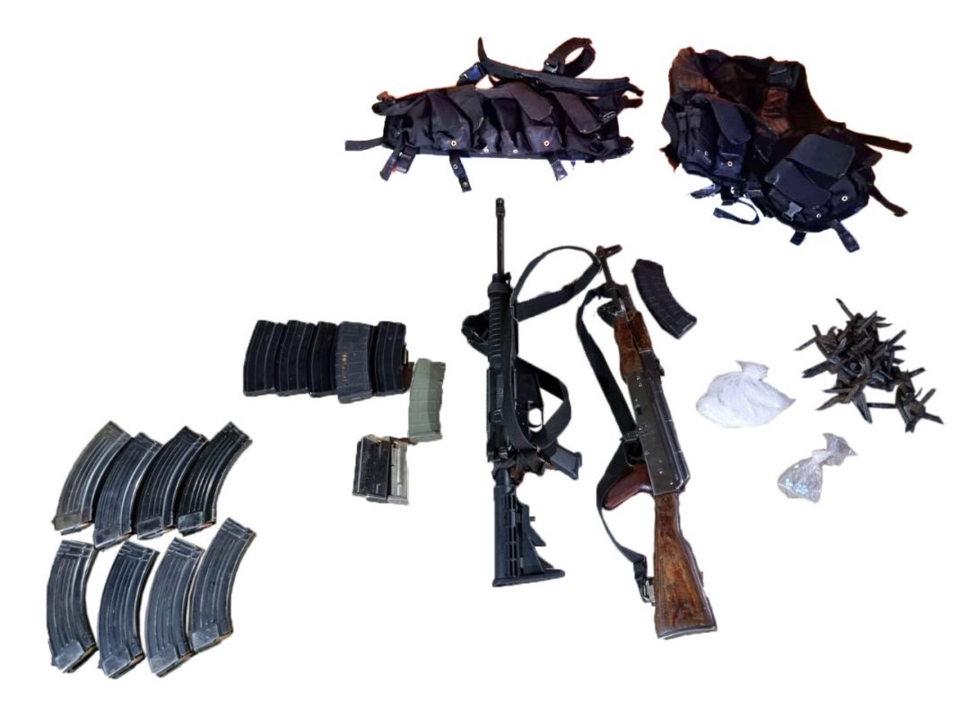 Había cargadores para arma corta, bolsas con presuntas drogas, arma tipo AK-47, un chaleco táctico y púas tipo ‘poncha llantas’