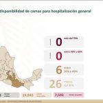 A nivel nacional, 77% de camas de hospitalización general están disponibles y 23% ocupadas. En camas con ventiladores, 73% están disponibles y 27% ocupadas.