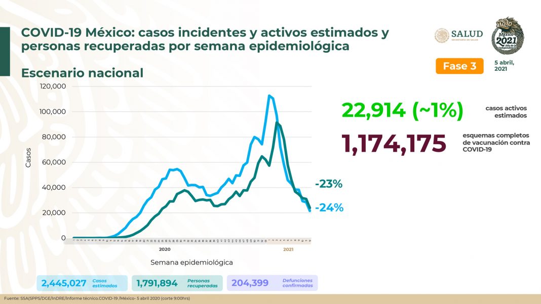CIUDAD DE MÉXICO.- Al 05 de abril de 2021 hay 1,791,894 personas recuperadas de COVID-19 y 204,399 defunciones confirmadas.