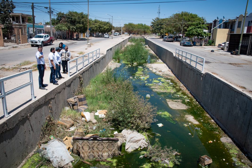 Durante el recorrido de este jueves, se desplegó una cuadrilla de trabajadores sobre el canal localizado en los límites de Hacienda del Valle, colonia Adolfo López Mateos y San Isidro (sector Cumbres del Sur).