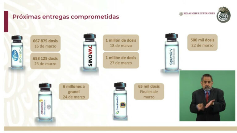 El canciller Marcelo Ebrard anunció que a partir de abril se duplicará la entrega de vacunas de Pfizer-BioNTech.