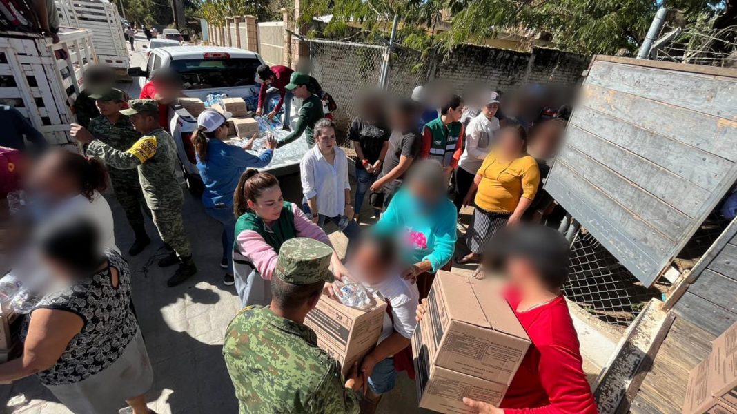 CULIACÁN, Sin.- Son un total de 500 despensas las otorgadas, así como 70 galones de 5 litros de agua cada uno, con lo que se busca contribuir al objetivo principal de esta caravana que es el de brindar asistencia social, de salud y seguridad alimentaria a los pobladores.
