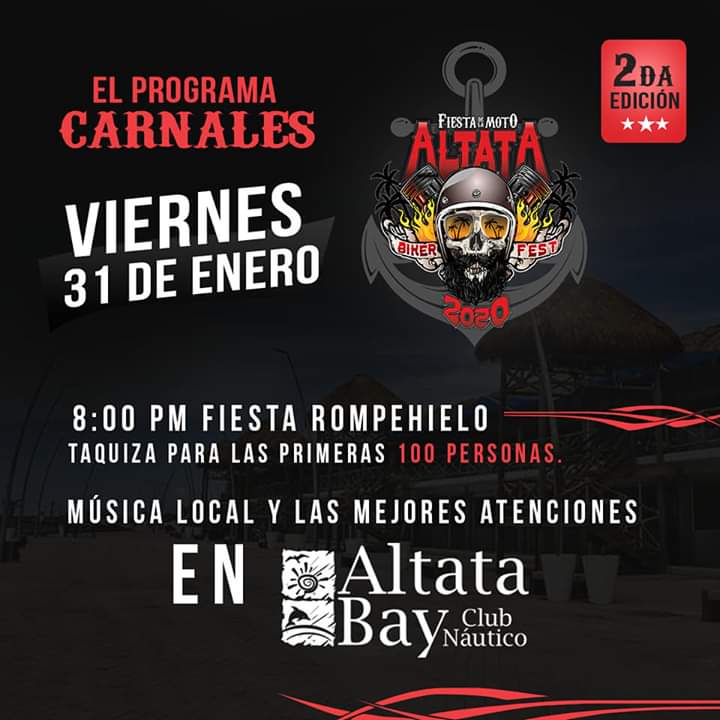NAVOLATO, Sin.- Este jueves anunciaron el segundo Festival de la Moto “Altata Biker Fest 2020”, evento que se desarrollará del 31 de enero al 2 de febrero, y en el cual se espera la participación de 5 mil motociclistas locales, nacionales e internacionales.