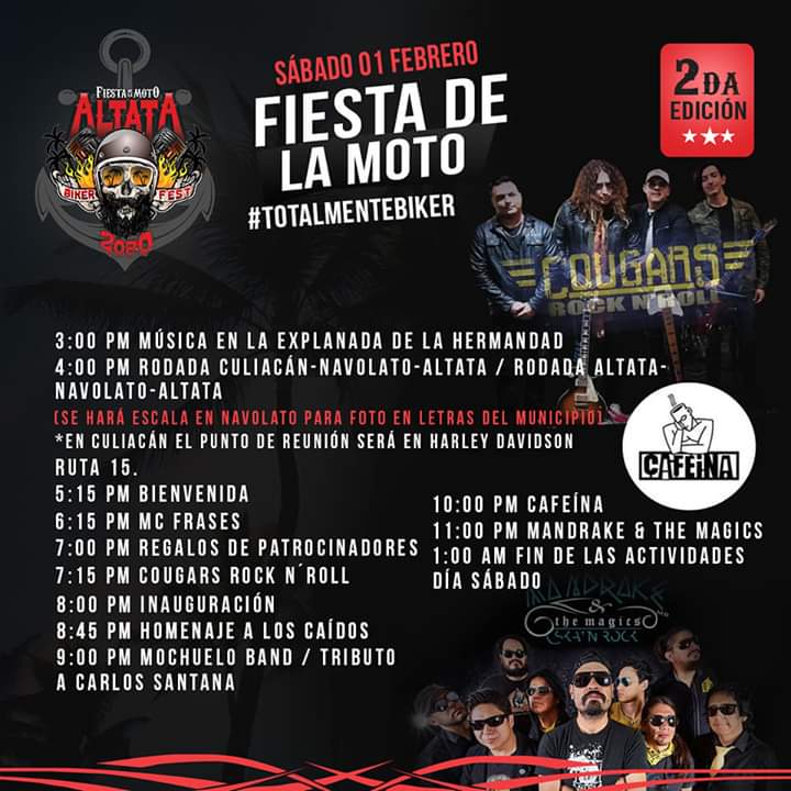 Se trasladarán a Altata donde será la inauguración oficial e iniciará la fiesta en grande con música en vivo, y el domingo se llevará a cabo otra rodada a Nuevo Altata y cerrarán con una fiesta al estilo sinaloense con grupos norteños y banda.