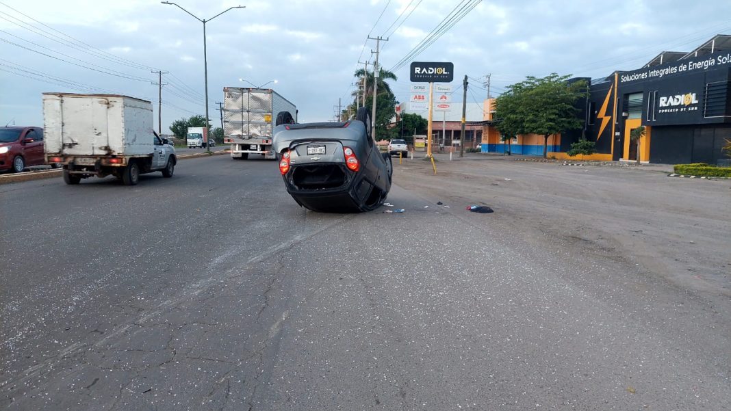 Fue en el semáforo de esa demarcación que tras el impacto la unidad volcó de forma brusca
