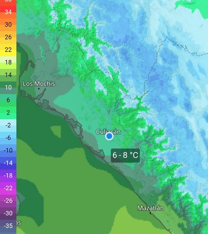Dijo que con bajas temperaturas aún en Sinaloa la mañana de este sábado en Culiacán con sensación térmica de 6 a 8 grados, mientras el frente frío 25 se extenderá como estacionario al norte de la península de Yucatán, continuará interactuando con un canal de baja presión sobre el sureste de México.