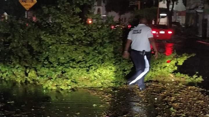 Durante la precipitación más fuerte dos árboles fueron removidos para agilizar la circulación el primero en blvd. Xicoténcatl y Doctor Mora el segundo en la Avenida Álvaro Obregón antes del puente a La Primavera.
