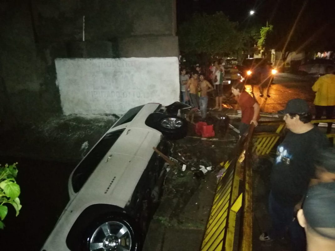 Conducía una camioneta de lujo que fue llevada por la corriente en cuestión de minutos, según un video que circula en redes sociales.