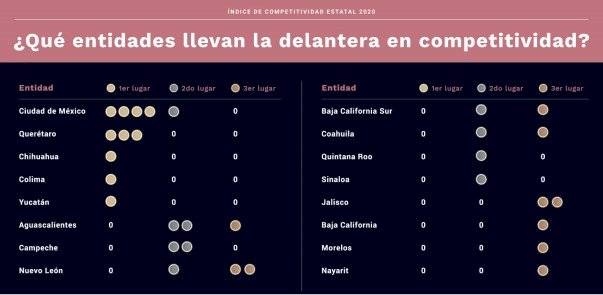 CIUDAD DE MÉXICO.- El Índice de Competitividad Estatal del IMCO reveló que solo 16 de las 32 entidades federativas lograron ganaron alguna medalla por tener nivel de competencia en sus políticas públicas.
