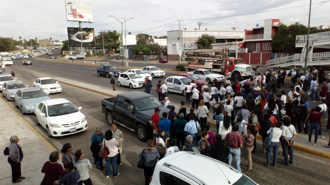 CULIACÁN, Sin.- Más de un centenar de maestros jubilados de la sección 27 agrupados en el Frente Democrático Herlinda Barrera Uicab provenientes de todo el estado cerraron por espacio de 10 minutos el paso a la circulación vial del bulevar Pedro Infante a la altura del Congreso del estado en reclamo del pago de aguinaldos.