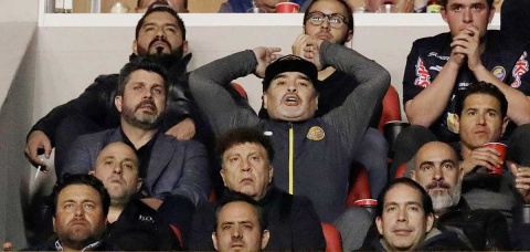 Parecían atrás las polémicas protagonizadas por Maradona durante el Mundial realizado este año en Rusia, donde hizo señas obscenas luego que Argentina anotó un gol para vencer a Nigeria, realizó un gesto considerado discriminatorio hacia un hincha asiático y se le apreció tambaleante en el graderío.