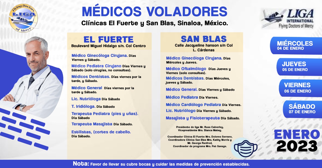 Los médicos voladores realizan esta noble labor en la cabecera municipal y en la sindicatura de San Blas. Estarán atendiendo a partir del día miércoles 04, hasta el día sábado 07 de enero.