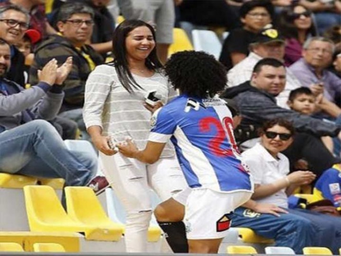 Aunque recibió un ‘sí’ por parte de su amada y una ovación de parte de los aficionados, hubo a alguien que no aplaudió el romántico momento: el árbitro.