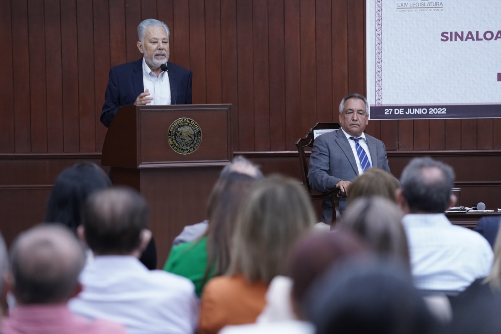 El exgobernador de Sinaloa y expresidente del Congreso local Jesús Aguilar Padilla destacó, al pronunciar la Conferencia Magistral “Sinaloa a través de sus Constituciones, evolución y retos”, el proceso histórico que llevó a la conformación de la Constitución de 1922, la cual, comentó, refleja la aspiración y el sentir de los sinaloenses por alcanzar mejores condiciones de vida.