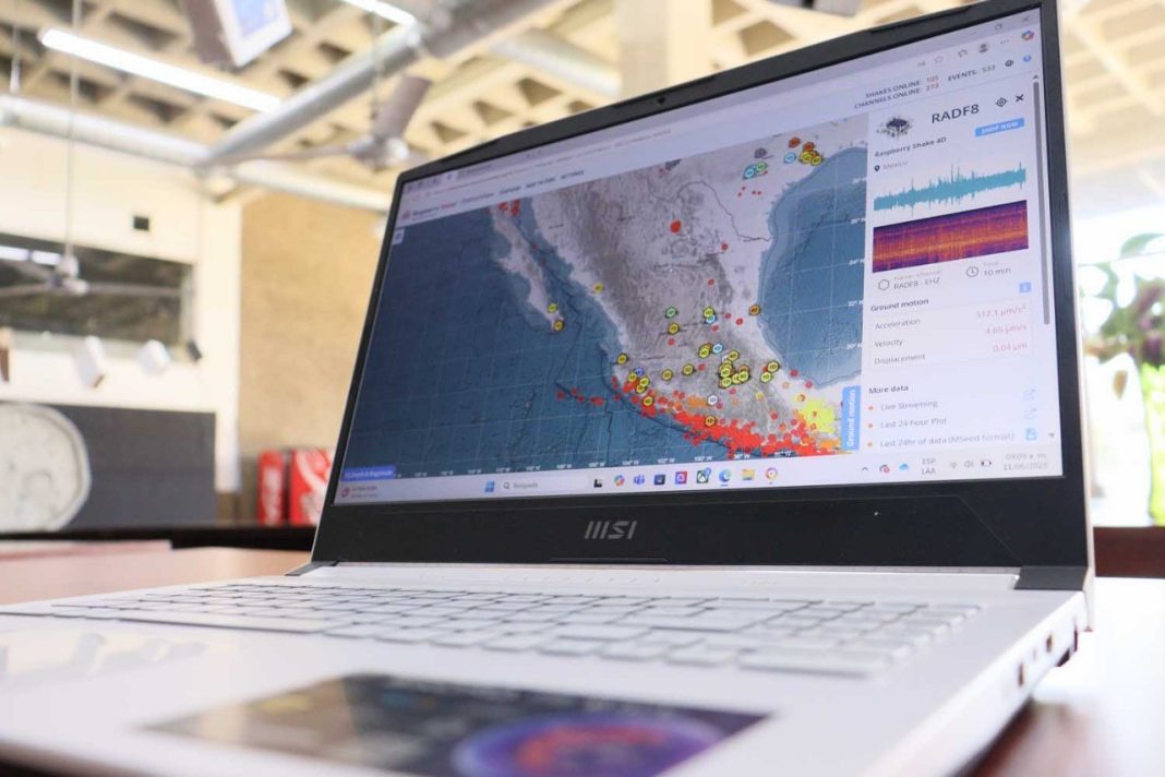 Señaló que el equipo, un sismógrafo de bajo costo conocido como Raspberry Shake 4D, fue instalado en el sótano de la Biblioteca Central “Eustaquio Buelna Pérez”, donde se ha mantenido en funcionamiento desde las vacaciones de Semana Santa y permanecerá activo hasta diciembre de este año, gracias al apoyo logístico del recinto, el dispositivo se mantiene conectado a internet y energía eléctrica para transmitir datos en tiempo real sobre la actividad del entorno, dijo.