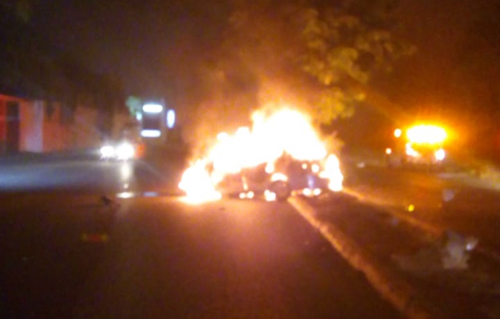 El hombre murió carbonizado en el interior de la unidad tras el impacto contra un árbol ubicado el camellón de la vía registrado a las 03:00 horas.