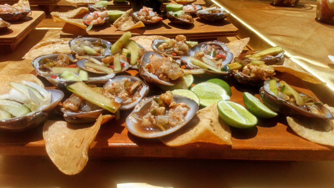 En esta muestra gastronómica el restaurante La Paloma, ubicado en el Muelle 33 del puerto, mostró los populares shots, cuyo componente es un jugo de mariscos de la casa y coronado con ostión.
