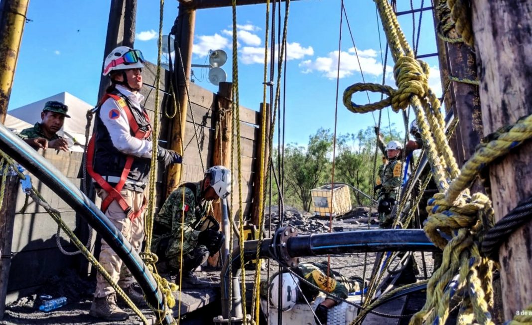 Laura Velázquez, coordinadora nacional de Protección Civil, explicó que se ha trabajado de día y noche, 134 horas al momento; no obstante, no ha sido posible que un dron submarino ingrese a los 3 pozos inundados.