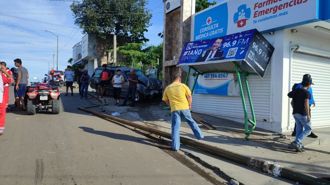 De acuerdo a las primeras versiones, la mujer de 36 años de edad, fue el último impacto después de que la camioneta que circulaba a exceso de velocidad había derribado dos postes y el parabús.