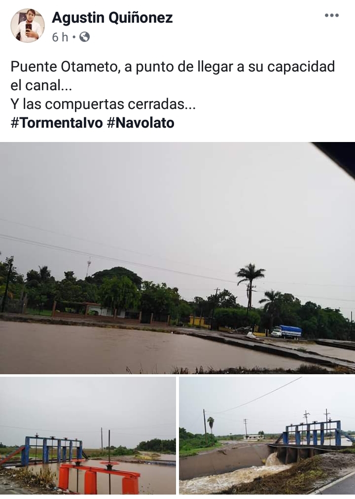 Poco antes de las 16:00 horas de hoy se reportaron en nivel fuera de lo normal el canal de riego de Otameto, publicado por Agustín Quiñónez desde su cuenta de Facebook y confirmado por Protección Civil, demanda que según el titular del organismo, Marco Antonio Juárez Salgueiro, debió ya ser atendida.