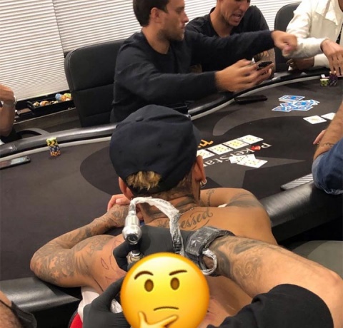Su tatuador Thieres Paim fue quien divulgó las imágenes a través de las redes sociales, en las que se aprecia al brasileño al lado de amigos jugando a las caras.
