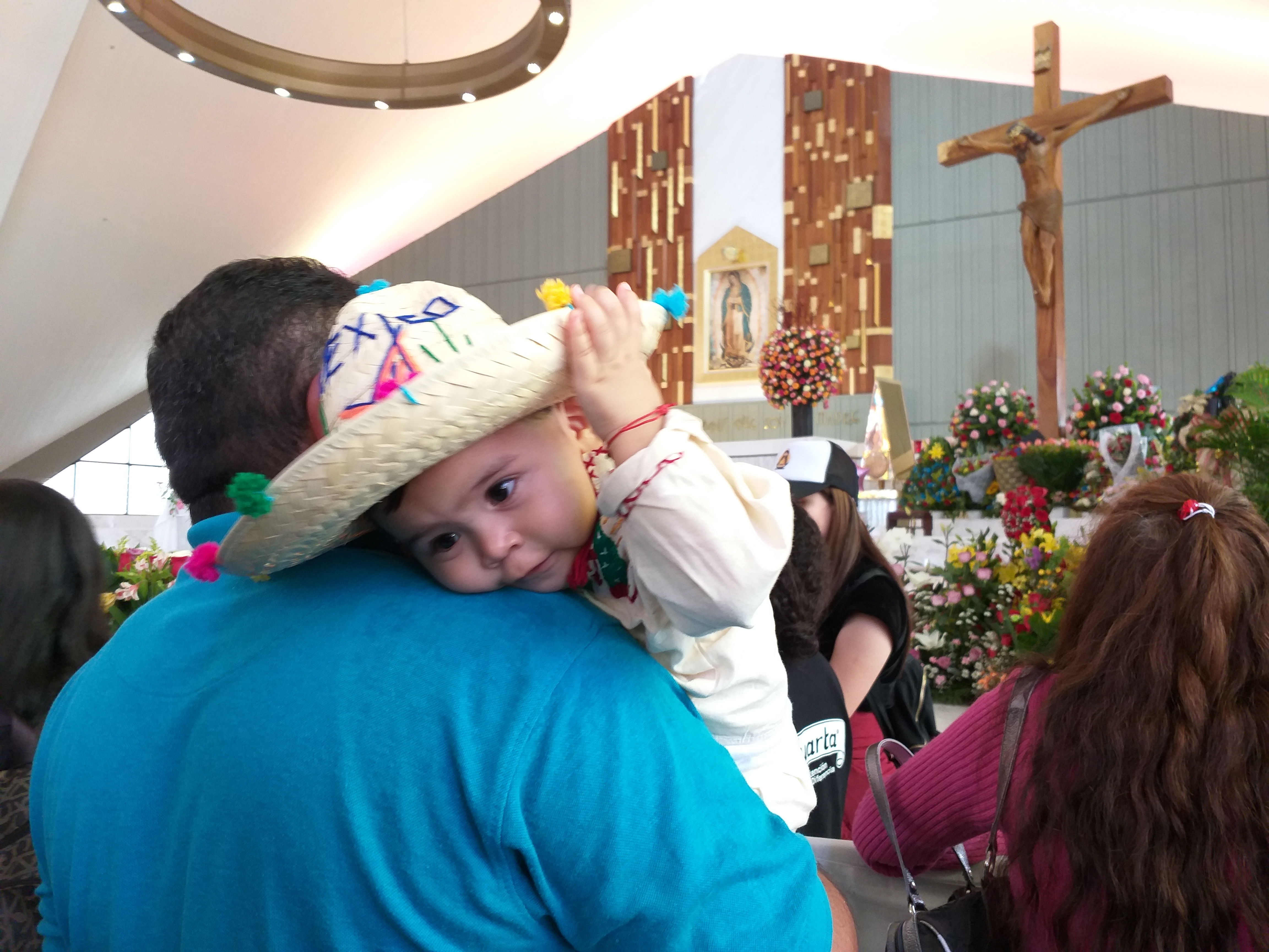 La niña ayudaba a su padre a subir los 200 escalones camino al templo donde los esperaza la Morenita y cumplir una manda.