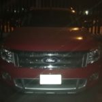 Se trata de un vehículo de la marca Mazda, color plata, tipo vagoneta y una unidad marca Ford, tipo pick up de color rojo, ambas con las puertas del conductor abiertas.