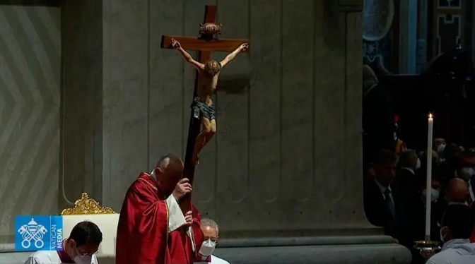 En la oración universal de los fieles en la que este Viernes Santo se reza por la Iglesia, el Papa, los obispos, sacerdotes, los catecúmenos, la unidad de los cristianos, los judíos, los que no creen en Dios y los gobernantes, el Papa Francisco también elevó una especial petición por los pueblos que sufren las “atrocidades de la guerra”.